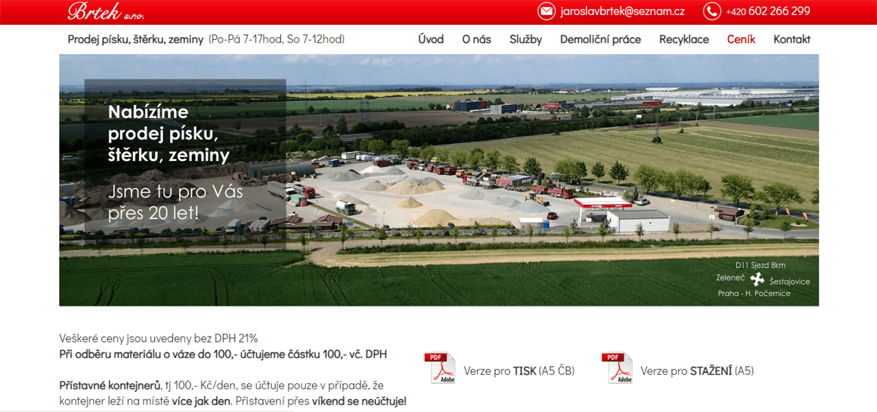 Nabízíme prodej písku, štěrku a zeminy. Kromě prodeje těchto materiálů zajišťujeme také zemní práce a autodopravu.